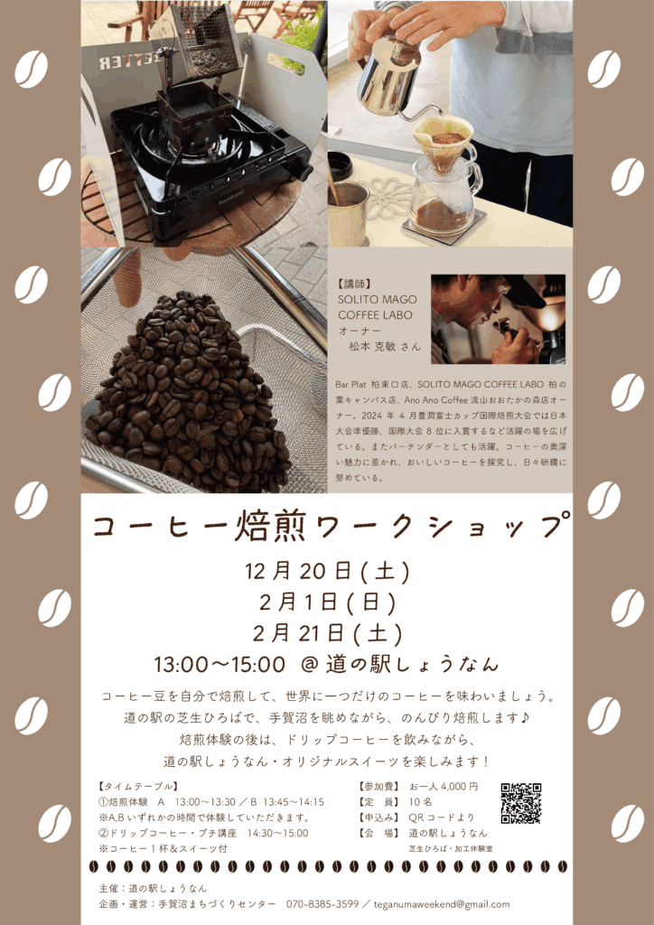 道の駅しょうなんの芝生ひろばで、コーヒー豆の焙煎体験をしてみませんか?