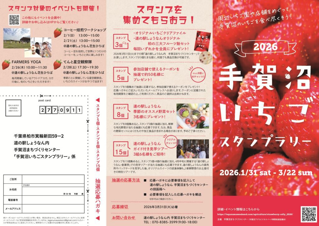 ※抽選に応募される方は、道の駅しょうなん「手賀沼まちづくりセンター」に設置された専用応募ボックスに投函、もしくは郵送(必要事項を記入の上、切手を貼付)をお願いします。